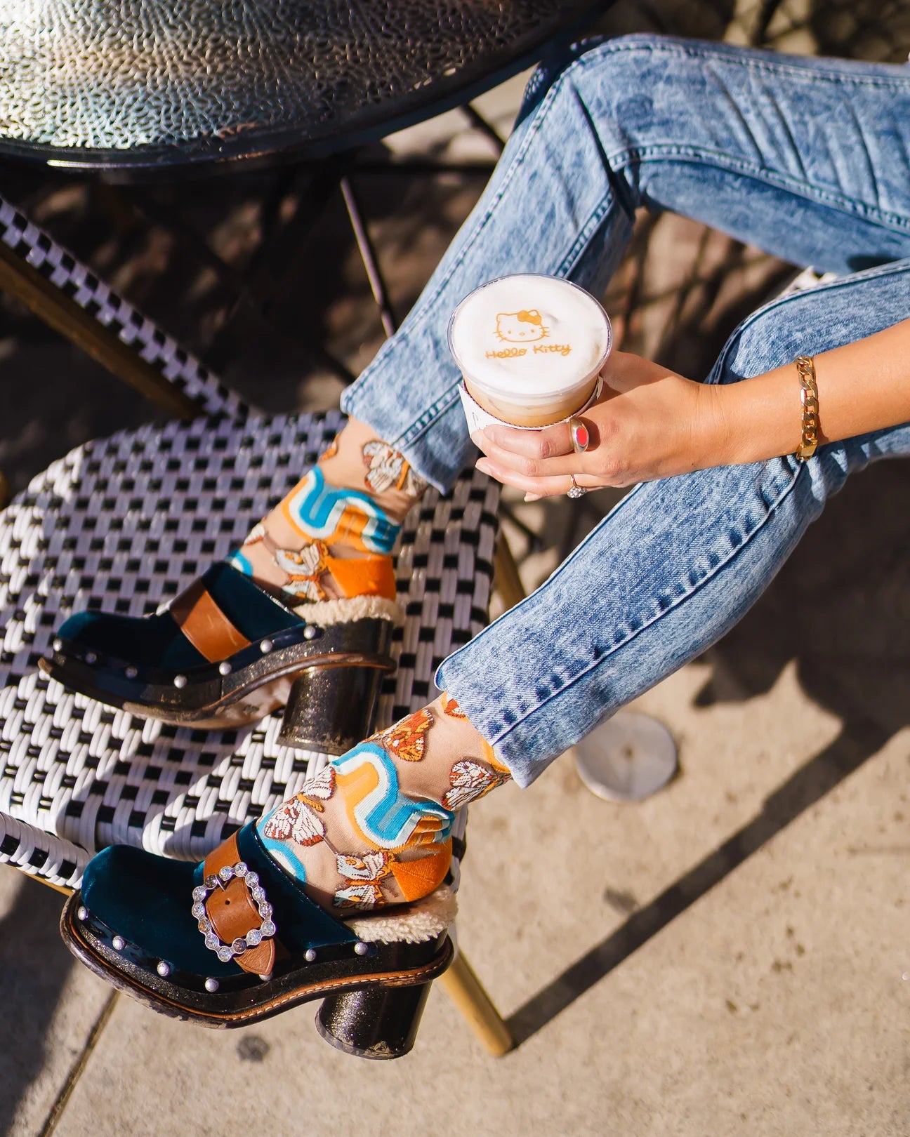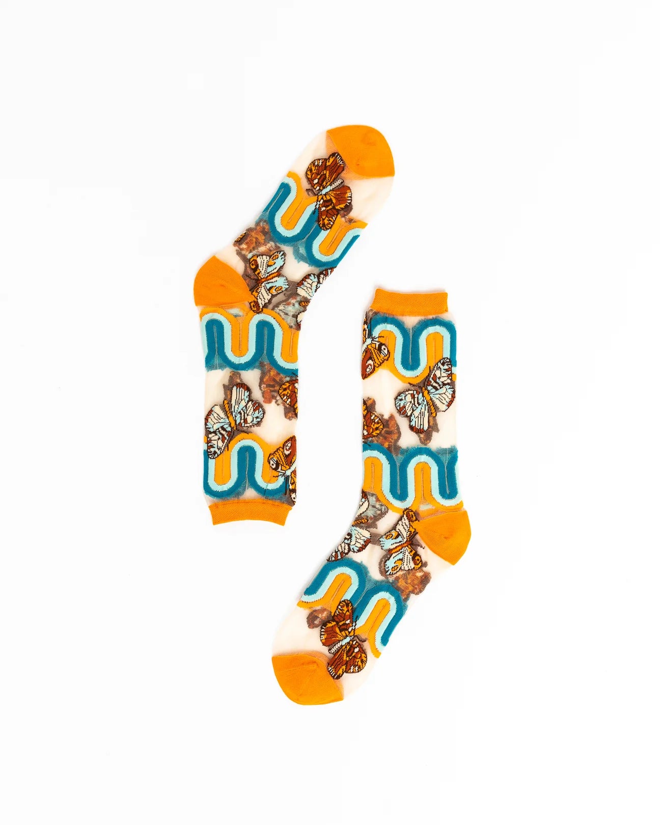 Set against a nude sheer fabric, this statement '70s sock adds color, texture, and a pop of vintage to your look.