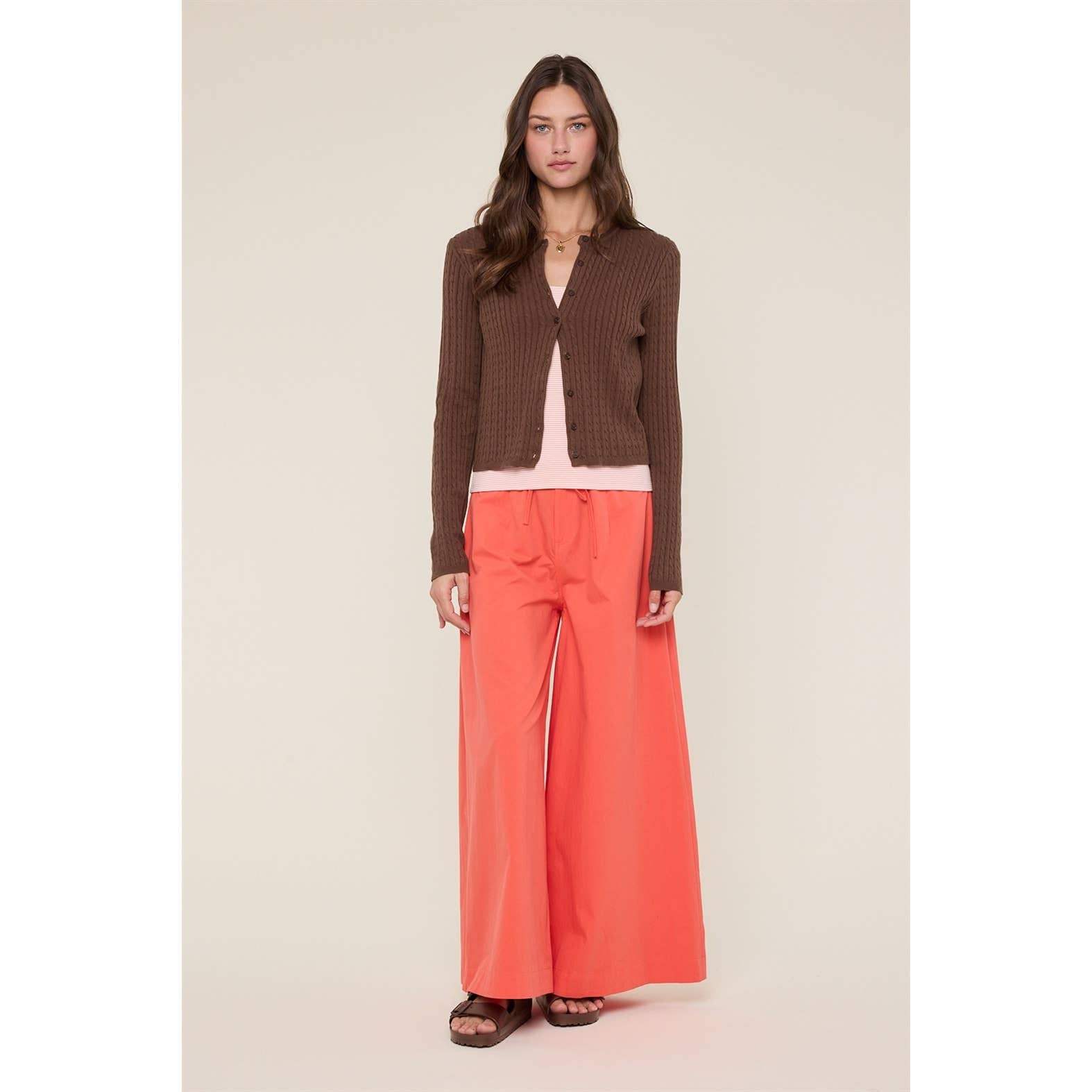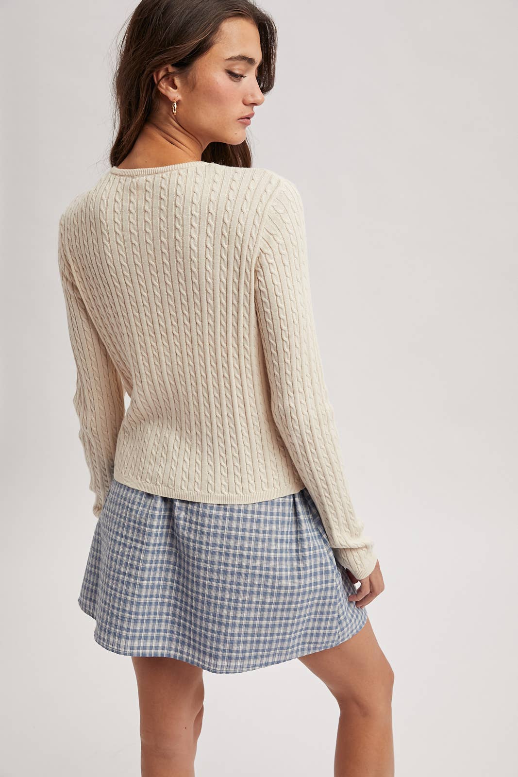 Classic cable knit meets contemporary cropped style. Button-up front and soft knit fabric make this cardigan versatile for casual days, weekend outings, or layering for cooler weather.